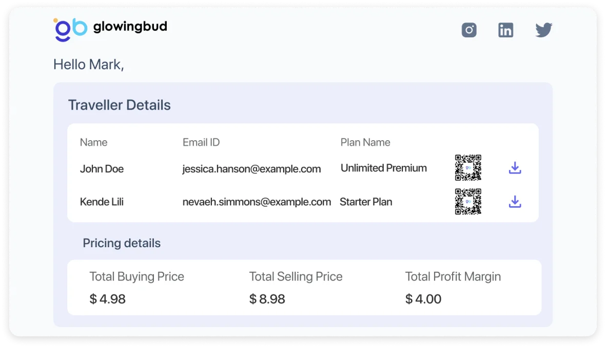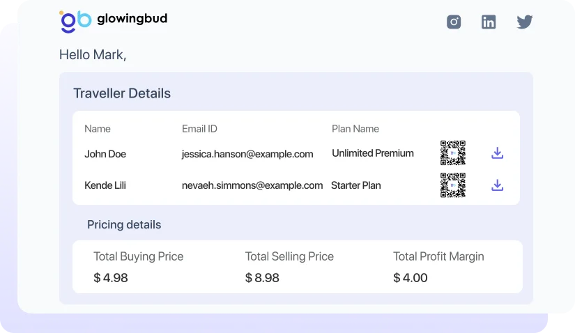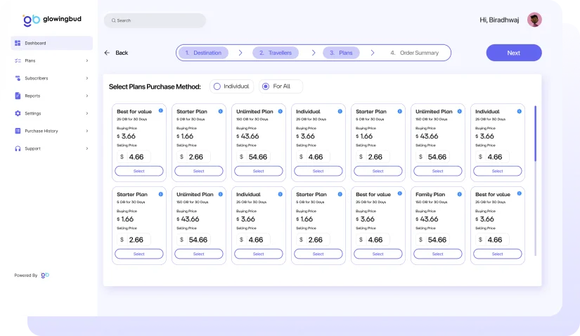 Glowing Bud’s Traveller Reseller App is available with pre-integrated connectivity, exclusivity and safety of travellers even in bulk bookings.