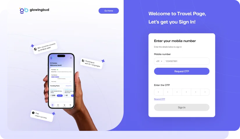 Glowing Bud’s Traveller Reseller App is available with pre-integrated connectivity, exclusivity and safety of travellers even in bulk bookings.